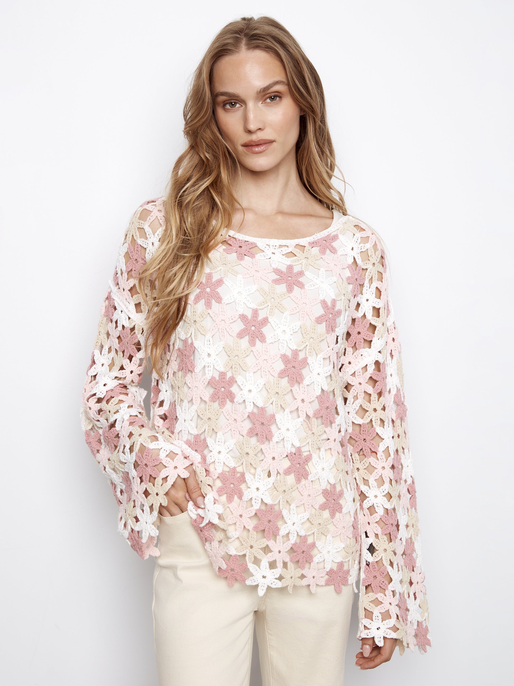 Cotton Blend Crochet Flower Top